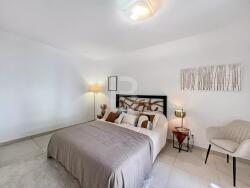 Cet appartement se compose d'une entrée desservant une chambre à coucher attenante à son dressing suivi d'une grande salle de bains avec baignoire et toilettes, d'un séjour au Sud avec cuisine américaine prolongé de sa terrasse qui offre une magnifique vue sur la mer.