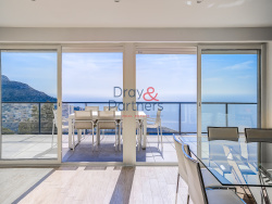 SOUS COMPROMIS !!! Découvrez cette magnifique villa contemporaine située à Eze, offrant une vue panoramique exceptionnelle de chaque pièce, tant à l'intérieur qu'à l'extérieur. Cette propriété rare allie luxe, confort et tranquillité et vous séduira , certes avec sa vue mer mais aussi ses nombreuses expaces exterieurs et ses grandes ouvertures qui donnent l'impression de vivre sur un bateau . Caractéristiques de la villa: - Superficie : 145 m2 sur un terrain de 2700 m2 - 2 places de parking privatives - Studio indépendant de 22 m2 avec vue à couper le souffle sur le Cap Ferrat et jusqu'à l'Estérel -Piscine chauffée avec cuisine d'été et immense terrasse : une baignade avec vue mer inégalée - Aucun vis-à-vis, calme absolu - Proximité de l'hôtel 4 étoiles « Les Terrasses d'Eze » renommé pour sa vue - À quelques minutes du village pittoresque d'Eze L'espace de vie : La maison principale se compose d'un spacieux séjour de 66 m2 avec une cuisine de qualité entièrement équipée. Vous trouverez également un vestiaire de courtoisie à l'entrée, un WC invité avec lave-mains, un bureau et une buanderie attenante de 6 m2. Espace nuit : - 2 chambres enfants (9 et 10 m2) partageant une belle salle de bain avec fenêtre et WC - Master de 17 m2 avec salle de douche, rangements intégrés et terrasse privative offrant une vue mer imprenable - deux belles terrasses exposées sud et ouest, idéales pour savourer le soleil ou l'ombre selon vos envies saisonnières. Climatisation reversible , baies vitrées à galandage , volets roulants electriques avec centralisation , store electrique , piscine chauffée , cuisine d'tété .... Plus rare et avantageux : la maison possède sa propre source d'eau ! Ne manquez pas cette opportunité unique d'acquérir une villa de standing dans l'un des quartiers les plus recherchés de la Côte d'Azur. Contactez-nous au 06 28 72 66 13 dès maintenant pour planifier une visite et découvrir par vous-même cette propriété d'exception.