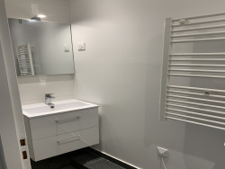 Un appartement de type F2, situé au 1er étage et comprenant : entrée, séjour avec cuisine aménagée et équipée (plaques, hotte, frigo), dégagement, une chambre et salle d'eau avec wc. Disponible.