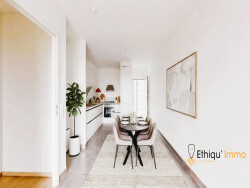 Divers : } Chauffage + eau chaude : Chaudière collective à granulés de bois de dernière génération avec comptage individuel } Raccorder à la fibre } Charges communes de copropriété : environ 85 /mois } Immeuble favorisant le vivre-ensemble : potager collectif, espace repas extérieur,... } Bien vendu libre de toute occupation