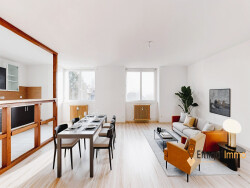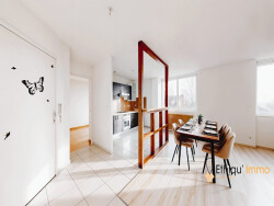 Ce 3 pièces de 82 m², sans mansarde, est situé au 1er étage sur 2 d'une copropriété de 25 lots. L'appartement exposé SUD-EST et bénéficie de tout le confort moderne : isolation intérieure 10cm, grandes fenêtres en PVC double vitrage équipé de volets électriques, dalle béton entre chaque appartement