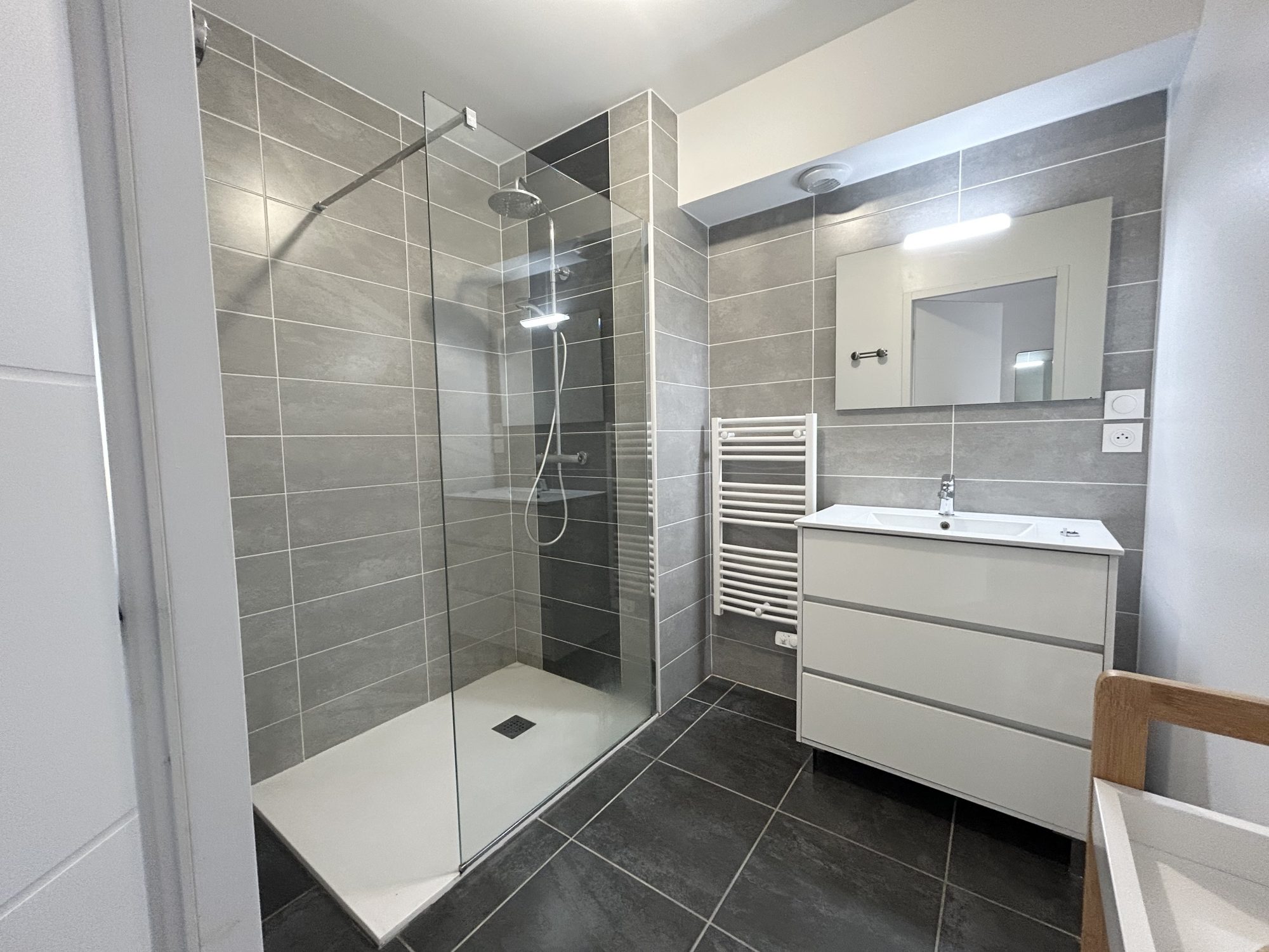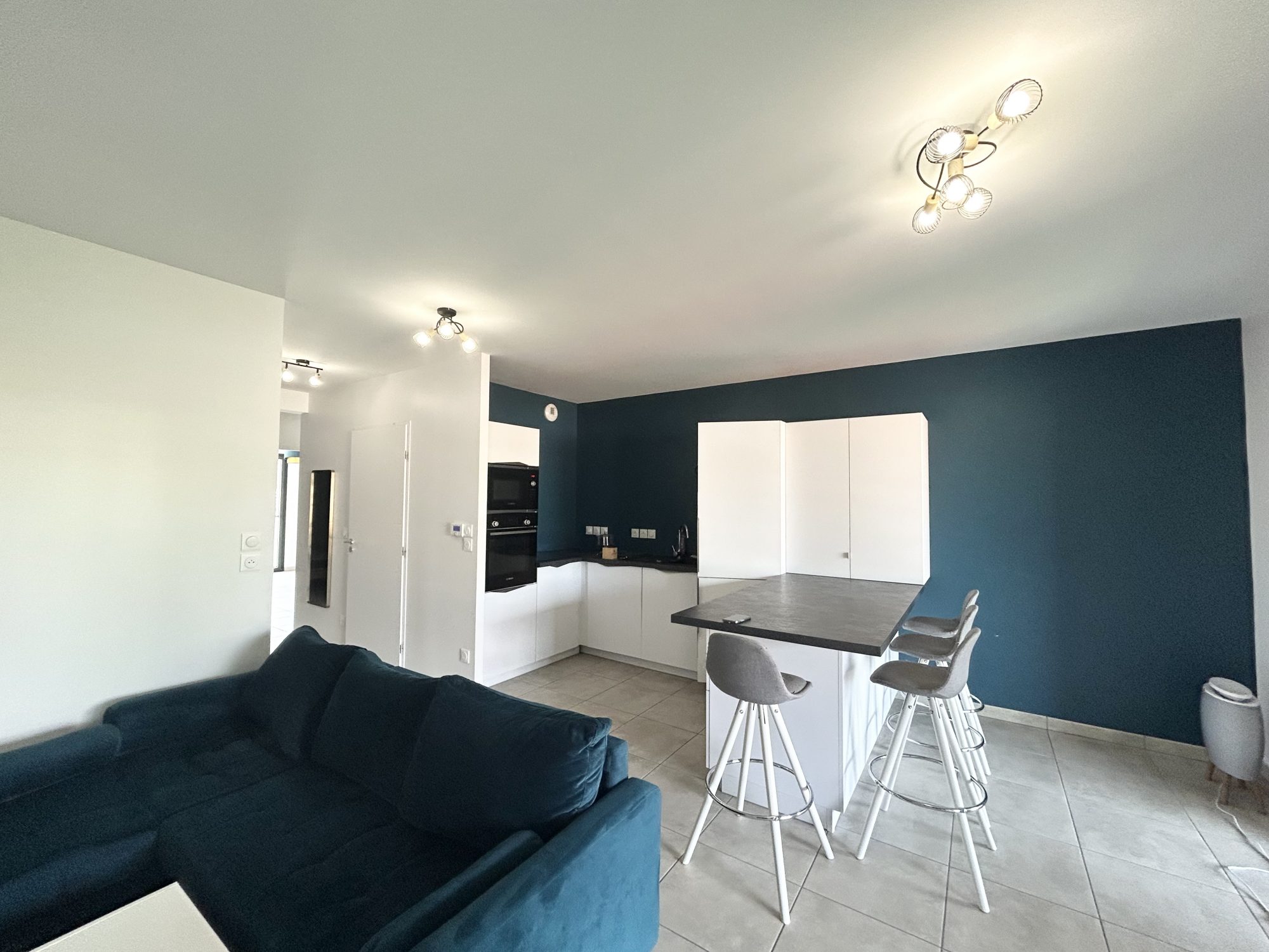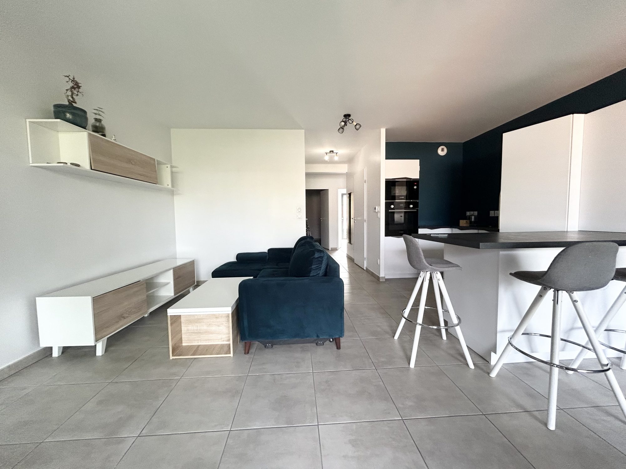 Hall d'entrée avec placard et espace buanderie, cuisine équipée (four, plaques, hotte, LV) ouverte sur belle & lumineuse pièce de vie donnant accès à une terrasse de 20 m² env., 2 chambres dont 1 avec placard donnant aussi accès à la terrasse, salle d'eau avec douche, double vasque et radiateur SS, wc séparé, chauff ind gaz par le sol, double vitrage alu, volets roulants élec, ascenseur & visiophone. Fin de préavis le 30/12 mais peut être dispo à partir du 1/12. Possibilité de garage 2P en enfilade (90/mois en sus) Classe énergie C (DPE C en date du 09/04/25 estimation consommations annuelles d'énergie entre 720 et 1030 prix moyens des énergies indexés sur les années 2021, 2022, 2023)