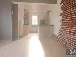 Appartement de type F3 comprenant une entrée individuelle, à l'étage un séjour ouvert sur une cuisine équipée, une chambre avec salle d'eau et wc. Au deuxième étage une autre chambre avec salle d'eau et wc. Un WC au rez de chaussée. Une cave, un grenier et une remise à l'extérieur. Chauffage électrique.