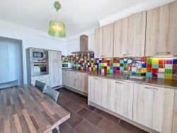 L'appartement est en excellent état et meublé avec goût. La cuisine est indépendante et est aménagée et équipée d'une hotte, plaque à induction, frigidaire/congélateur, four et lave-vaisselle.