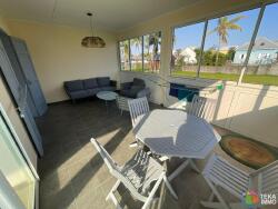 Cette maison de 101.28m² est composée d'un séjour climatisé de 27m², une cuisine aménagée et équipée de 16m², deux chambres, une salle d'eau avec douche, un wc. De plus la maison dispose d'une terrasse fermée de 20.45m², une terrasse ouverte de 15m² et un garage de 20m².
