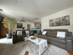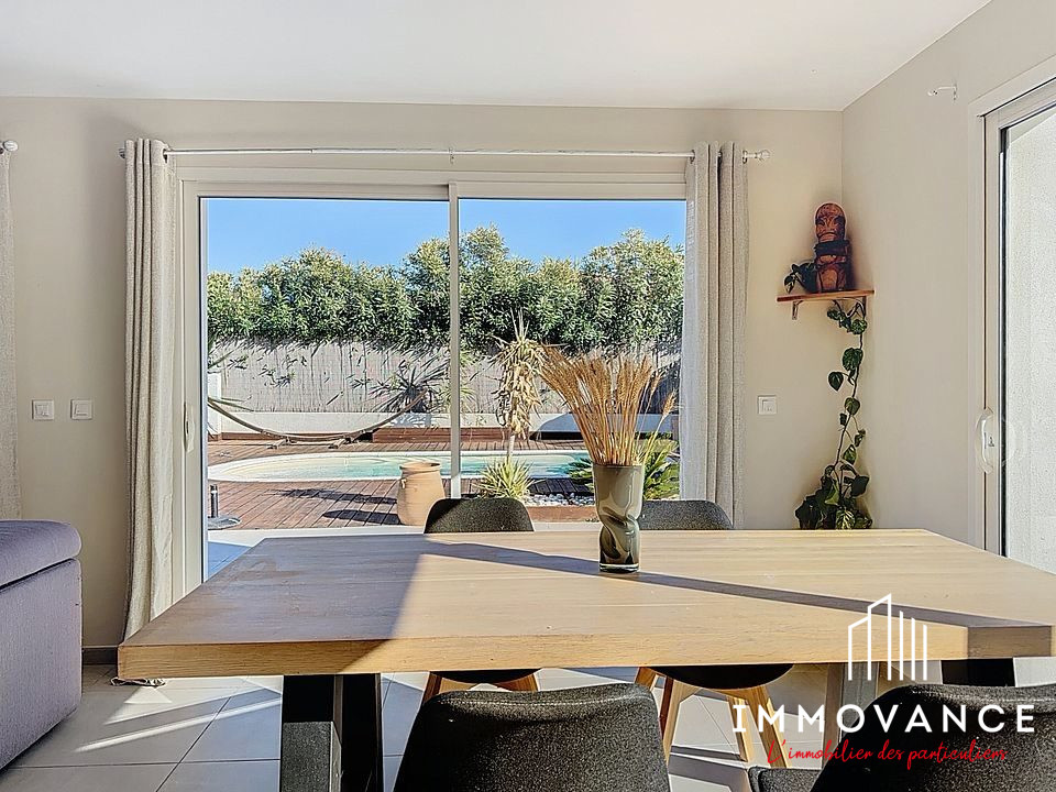 Fabrègues, dans le centre du village. Venez découvrir cette magnifique maison vigneronne F5 de 130m2 comprenant un hall d'entrée, une grande pièce à vivre avec Cuisine US meublée équipée, un bureau, 2 chambres dont une avec dressing, une salle d'eau et un WC indépendant. A l'étage, une grande suite parentale avec dressing et salle d'eau WC. A l'extérieur, une terrasse de 45m2 avec Cuisine d'été meublée équipée. Cette maison comprends deux grands garages. ( 45 et 85m2 ) Le plus, un studio indépendant avec une rentabilité assurée de 800 EUR / mois. Prestations : Menuiseries double vitrage PVC, Volet Bois restauré, Révovation compléte en 2019, Climatisation reversible gainable, Cuisine entiérement meublée équipée. Prix : 515.000 EUR Frais d'agence inclus. N'hésitez pas à contacter Baptiste de l'agence CAPITELLE IMMOBILIER Frontignan.