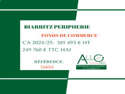 A vendre fonds de commerce avec concept de bar ,bar brasserie à vendre en périphérie de Biarritz. L'établissement est aux normes (ERP, extraction...), en parfait état et bénéficie d'une terrasse et d'un extérieur. Le stationnement est aisé ,aucun soucis de nuisances, à prévoir. Par choix ,le CA est généré actuellement sur 3 soirs d'ouverture uniquement . CA 2024/2025 /HT: 385 493 euros Loyer mensuel/HT/HC: 4500 euros Prix de vente /TTC/HAI: 243 760 euros Possibilité de location gérance avec option d'achat. Référence: 5149A Les informations sur les risques auxquels ce bien est exposé sont disponibles sur le site Géorisques : www. georisques. gouv. fr