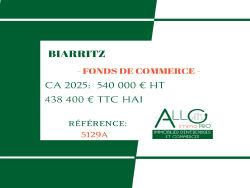 A vendre fonds de commerce de boulangerie en centre ville de Biarritz au coeur d'un quartier très commerçant et dynamique. Affaire historique, bien tenue et rentable.. CA /HT/2025: 540 000 euros Loyer mensuel HT/HC 1 350 euros. Référence: 5129A « Les informations sur les risques auxquels ce bien est exposé sont disponibles sur le site Géorisques : www.georisques.gouv.fr ».
