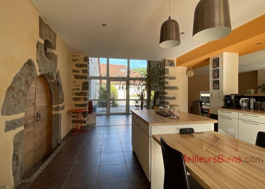 Grande pièce bar donnant sur une cuisine professionnelle équipée