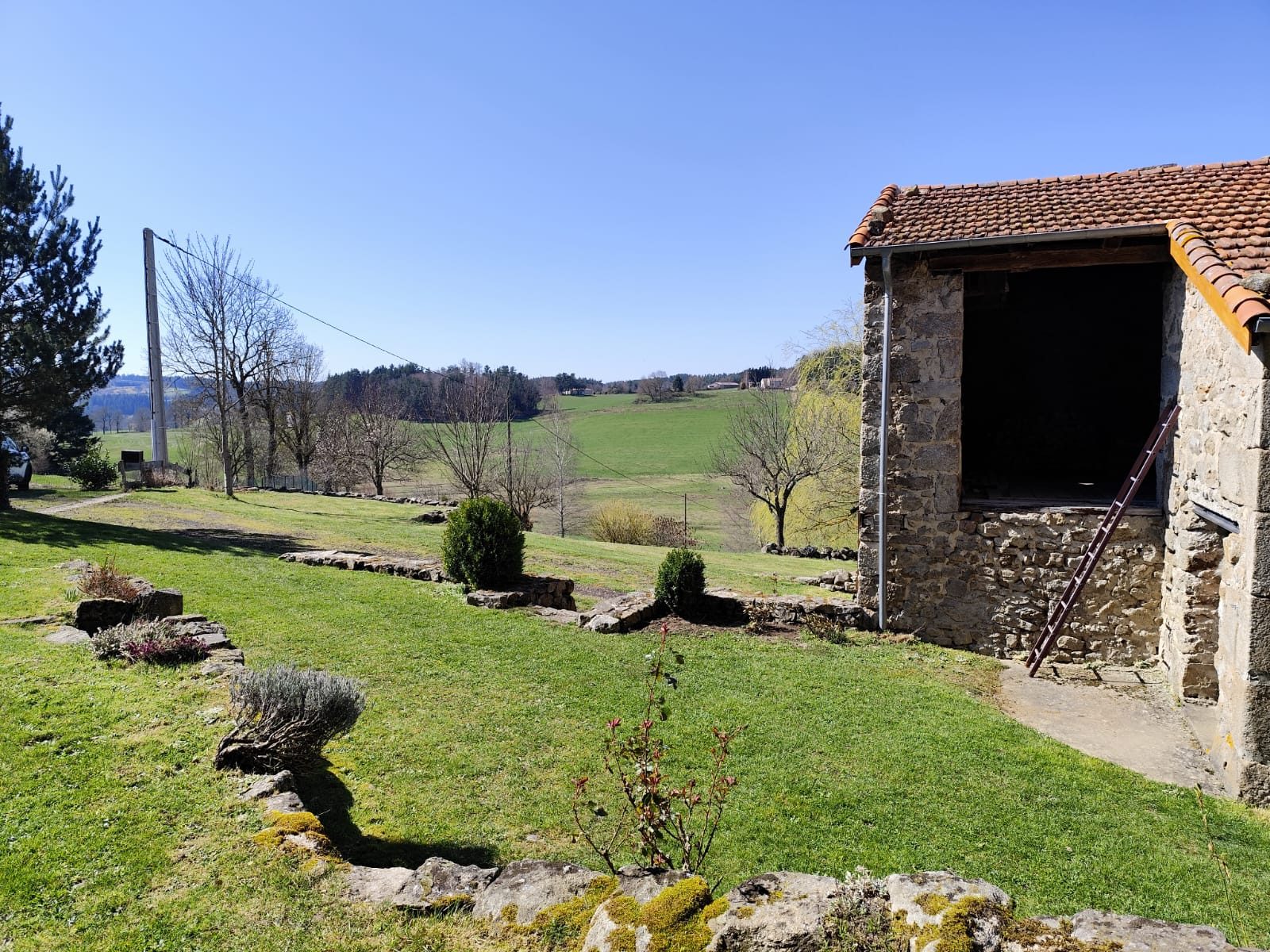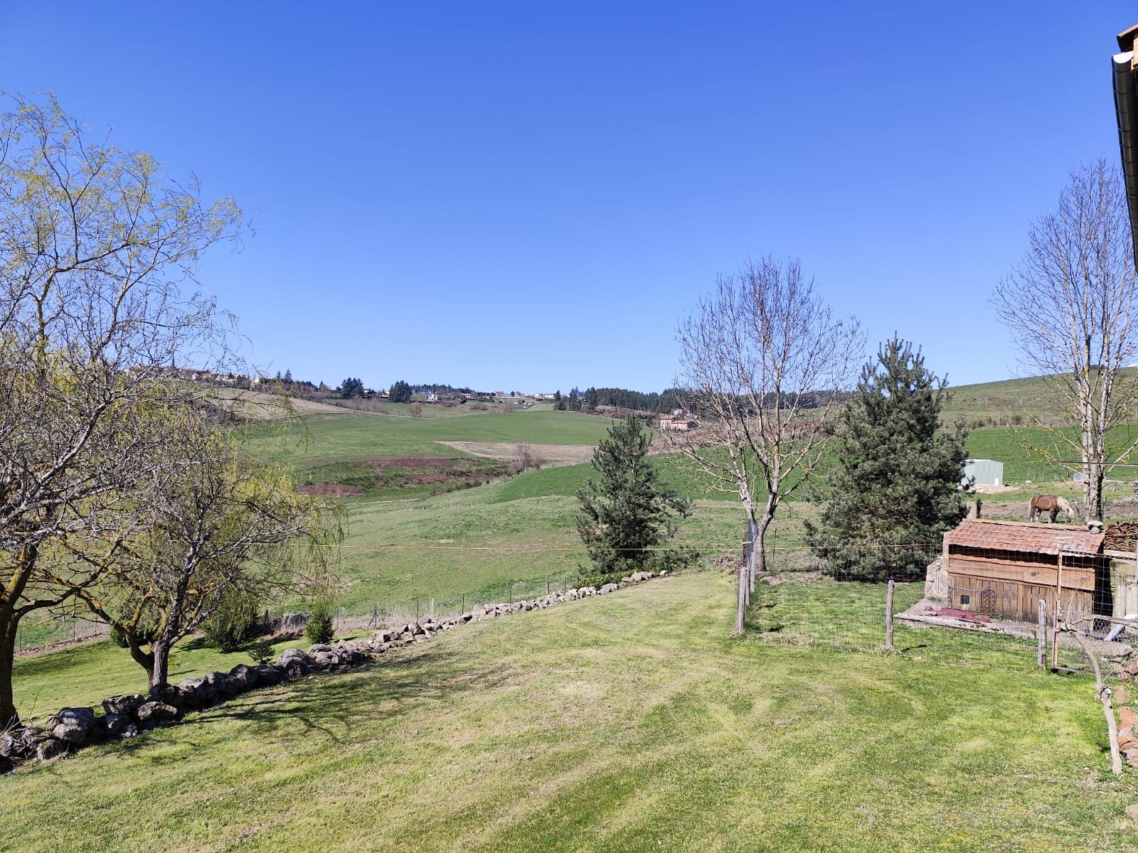 Implantée sur une parcelle arborée d'environ 4 331 m², la propriété bénéficie d'un cadre très calme et d'une vue dégagée sur les paysages environnants, avec en toile de fond le plateau du Mézenc et le bassin du Puy-en-Velay. Une serre ainsi qu'un garage à réhabiliter d'environ 25 m² situé en contrebas du chemin complètent les extérieurs.