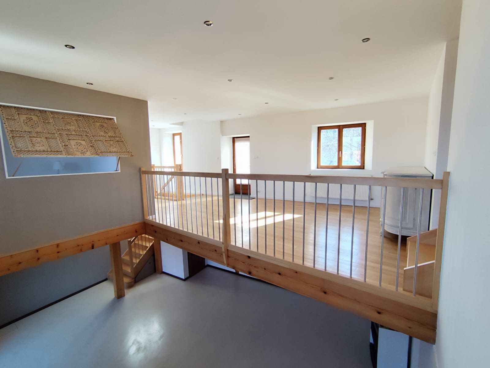 L'étage propose un espace nuit composé de trois chambres confortables, dont les surfaces varient entre 13 m² et 15 m². Vous y trouverez également une salle d'eau entièrement carrelée avec double vasque et un WC indépendant. Un vaste volume d'environ 60 m² complète cet étage et pourra facilement être aménagé selon vos projets : salle de loisirs, bureau, atelier ou espace détente. Un accès vers l'extérieur est également présent à ce niveau.