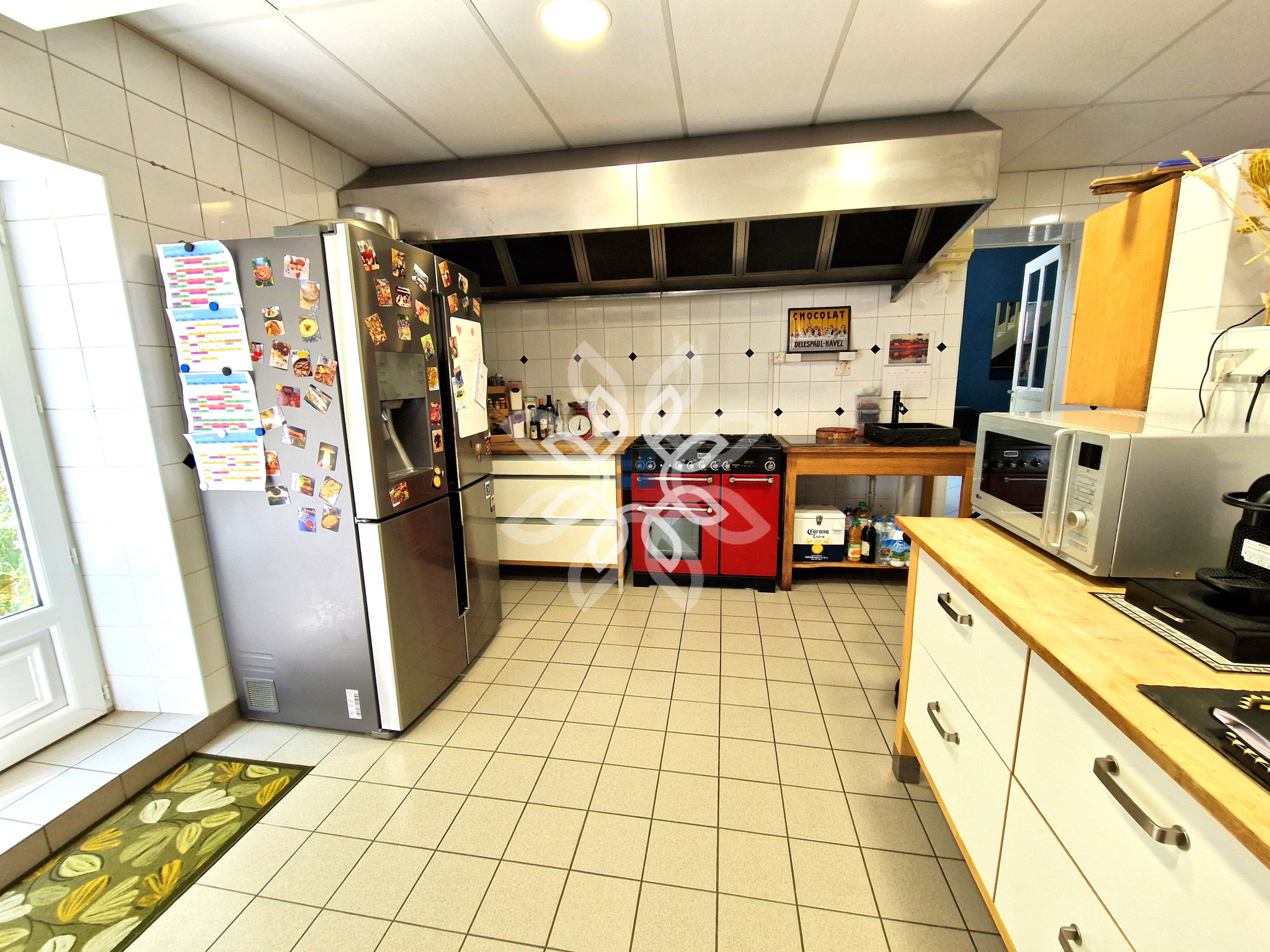 Dès l'entrée, un hall authentique et chaleureux mène à une grande pièce de vie d'environ 77 m² intégrant un espace cuisine aménagé et équipé avec piano de cuisson SMEG, ouverte sur le séjour. Un superbe four à pain en pierre vient souligner le caractère de cette pièce conviviale. Ce niveau comprend également une buanderie / cellier, un espace technique servant de chaufferie ainsi qu'un WC.