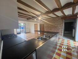 Spacieuse Fermette en semi plain pied nichée au calme à Nivelle à 5 min de Saint-Amand, avec volumes (228 m2 au sol), poutres et briques apparentes, le tout bâti sur 1400 m2, offrant :