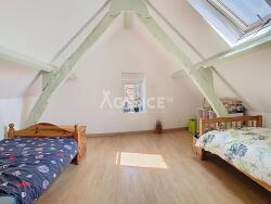 A l'étage, le palier dessert 2 autres chambres aux poutres apparentes, ainsi qu'un espace grenier offrant des possibilités supplémentaires.