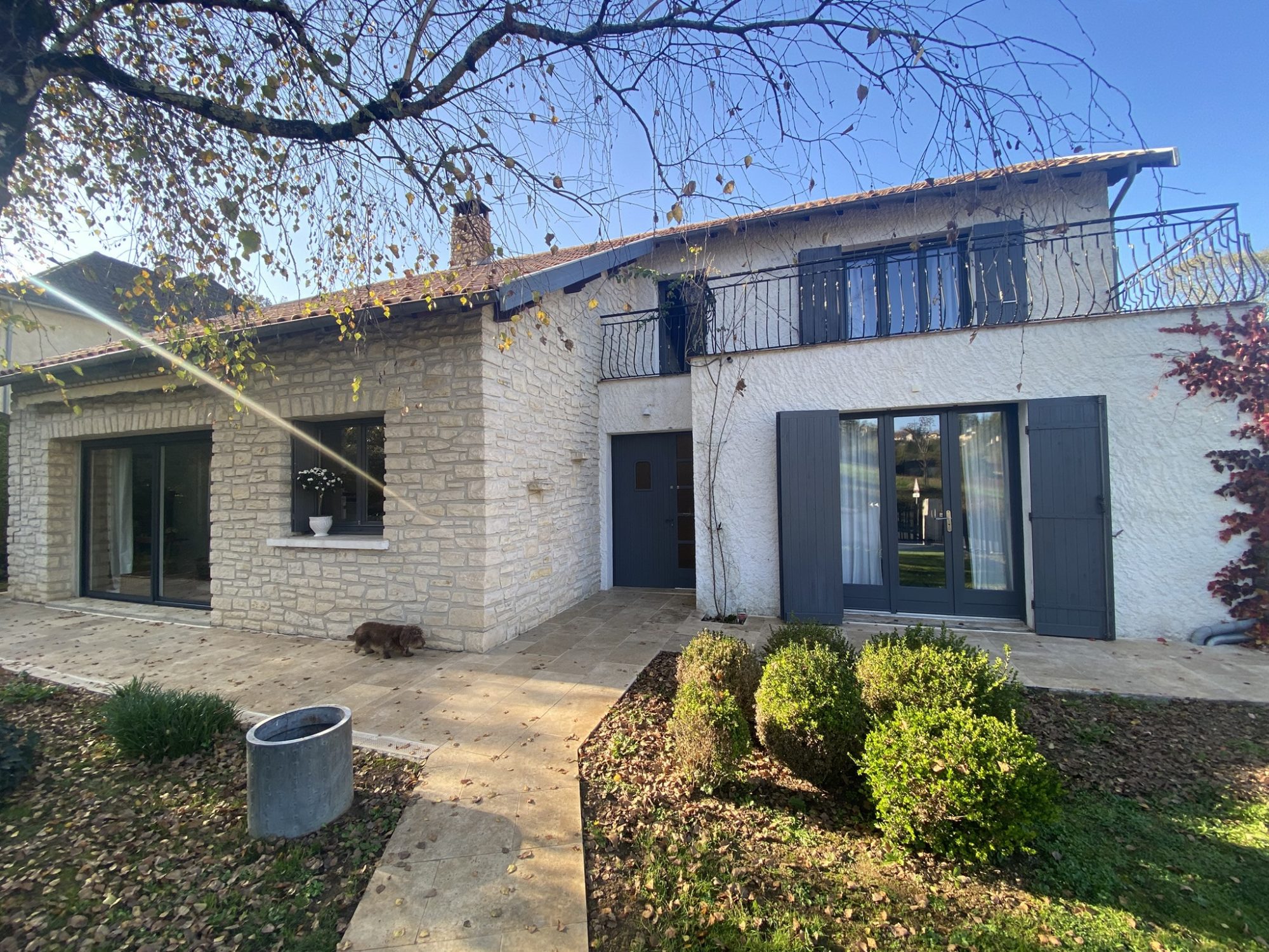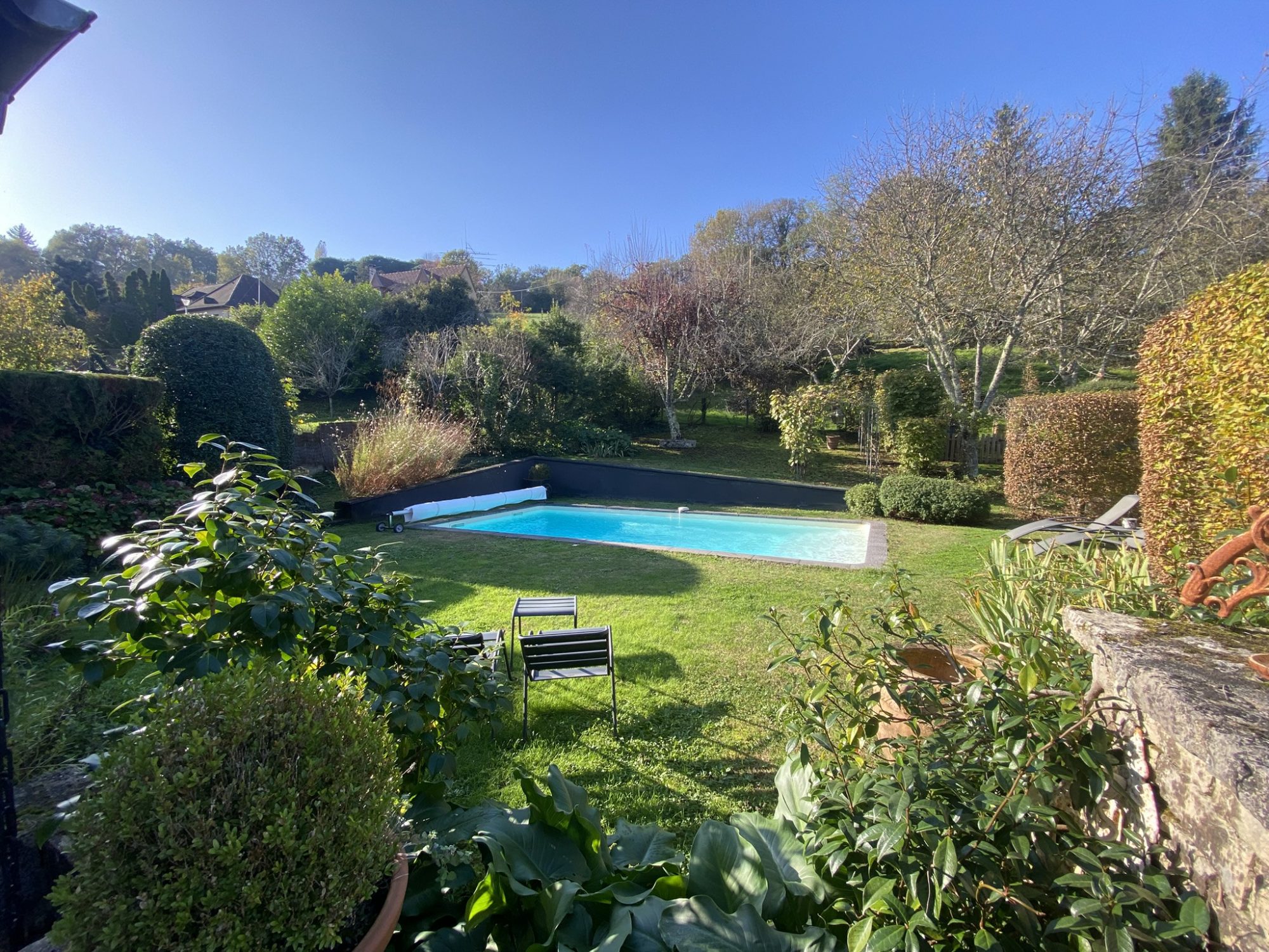 Proche de Thiviers , très bel ensemble rural entièrement rénové comprenant une maison principale , un gite , un studio indépendant , deux granges , une piscine et un grand terrain plat et arboré avec vue magnifique sur la campagne et les prairies environnantes . La maison principale d'environ 130 m2 comprend une pièce de vie avec cuisine équipée , poèle à bois , salle à manger , une chambre et salle d'eau en RDC . A l'étage deux grandes chambres en suite avec salle d'eau et toilettes . La maison en pierres a été rénovée en totalité et isolée . Chauffage électrique et poèle à bois . Petite terrasse ombragée sur le devant de la maison . Gite d'environ 65 m2 avec pièce de vie en RDC , deux chambres et salle d'eau à l'étage . Studio indépendant . La grange est aménagée en salle de jeux , en atelier . La seconde grange comprend un appenti ouvert sur l'extérieur ,très agréable et proche de la piscine . L'autre partie permet de stocker du matériel et elle abrite aussi le local technique de la piscine . Piscine au sel de 8,5 x 4, 5 . Potager , poulailler , puits Assainissement conforme à la législation actuelle . Pas de travaux à prévoir . Cette propriété a beaucoup de potentiel .car il est possible d'aménager encore des espaces dans la grange . Beaucoup de charme , d'authenticité et la possibilité de s'installer de suite , que l'on souhaite faire du business ou pas !