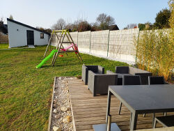 Située en bordure du bourg de Châteauneuf-du-Faou, cette maison rénovée de 2 chambres offre un cadre de vie agréable avec un fort potentiel d'agrandissement grâce à ses combles aménageables, permettant de créer une spacieuse maison familiale de 4 chambres. La propriété dispose d'un garage, d'un jardin clos facile d'entretien et d'un super bâtiment indépendant d'environ 65?m², idéal comme bureau à domicile, logement pour un proche ou revenu locatif. Prête à emménager, elle bénéficie de belles vues sur la campagne et d'un accès direct à des chemins de promenade et randonnées, combinant tranquillité, espace et proximité des commodités. La maison principale est organisée sur sous-sol et rez-de-chaussée. Le sous-sol comprend un garage et une buanderie, offrant des espaces pratiques de rangement et de travail. Au rez-de-chaussée, vous trouverez une cuisine équipée, une salle à manger, un salon lumineux, deux chambres, une salle de bains et un WC. Les combles offrent un excellent potentiel d'aménagement, permettant de créer des chambres supplémentaires et de transformer le bien en maison familiale spacieuse de quatre chambres. La maison a été entièrement rénovée avec fenêtres neuves et isolation récente, est raccordée au tout-à-l'égout, et dispose d'un chauffage central au fioul. Le jardin clos et facile à entretenir, accessible par portail électrique, est idéal pour les familles et les activités en plein air. L'atout majeur est le bâtiment indépendant d'environ 65?m², comprenant une salle d'attente, deux bureaux, salle d'eau et WC, offrant une flexibilité maximale pour un usage professionnel ou locatif. Châteauneuf-du-Faou est une commune dynamique offrant toutes les commodités locales : commerces, écoles, services médicaux et cafés. La maison profite d'un cadre verdoyant, proche du canal de Nantes à Brest, parfait pour la randonnée, le vélo et les activités en plein air. Les liaisons de transport sont excellentes : aéroport de Brest, train vers Paris, et ports ferry de Roscoff et Saint-Malo pour le Royaume-Uni et l'Irlande. Cette maison combine confort immédiat, potentiel d'agrandissement et cadre de vie privilégié dans le Finistère. Avec ses espaces modulables, son jardin facile d'entretien et ses belles vues sur la campagne, elle constitue une opportunité rare pour une résidence principale, un projet familial ou professionnel. Une maison rénovée avec autant de potentiel, de confort et d'emplacement est rare sur le marché. Une visite s'impose pour découvrir toutes ses possibilités et son environnement exceptionnel. (6.00 % honoraires TTC à la charge de l'acquéreur.) Katie TINNISWOOD (EI) Agent Commercial - Numéro RSAC : 831 920 855 - BREST.