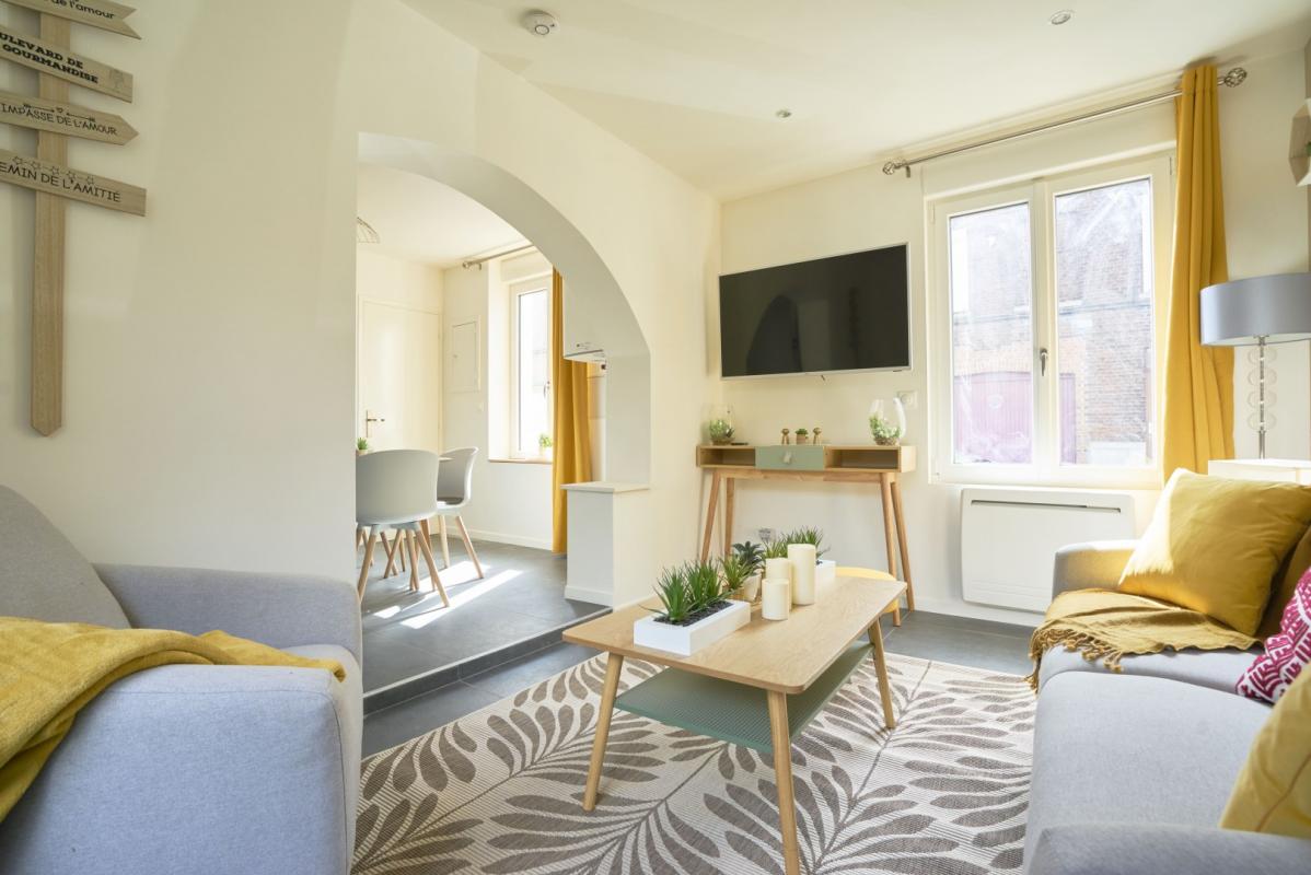 Venez découvrir, cette charmante maison entièrement rénovée, offrant d'agréables parties communes spacieuse et lumineuses. Un salon / salle à manger - séjour, disposé entre une cuisine entièrement meublée et une cour ensoleillée sans vis à vis.