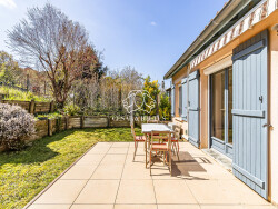 Elle se compose : Au rez-de-chaussée, vous trouverez un hall d'entrée desservant des toilettes séparées, un espace clos pouvant servir de chaufferie ou de garde-robe, ainsi qu'une pièce à vivre traversante d'environ 55 m² offrant une vue imprenable sur la vallée. Ce séjour cosy et lumineux est doté d'une cuisine ouverte avec îlot central, entièrement équipée avec hotte, réfrigérateur, four encastré, micro-ondes et même une cave à vin. À l'étage, la partie nuit comprend trois chambres d'environ 12 m² chacune, une suite parentale avec dressing et salle d'eau équipée d'une double vasque et d'une douche. L'étage dispose également d'un espace lingerie, d'une buanderie entièrement équipée avec évier et d'un espace de rangement. Une salle de bain avec douche, baignoire et toilettes séparées sont également présents.