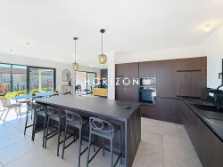 Cette villa neuve de 2023, d'environ 133 m², est située hors lotissement, sur un terrain clos et arboré d'environ 575 m². Idéalement située, elle bénéficie d'une double exposition, avec une terrasse est et une terrasse nord, chacune partiellement abritée et offrant une vue imprenable sur le Beaujolais et la plaine du Val de Saône.