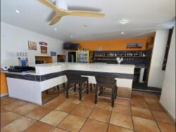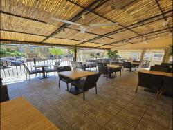 Une salle de restaurant spacieuse avec cuisine professionnelle toute équipée,