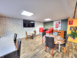 Fonds de commerce à saisir ! Imaginez-vous à la tête d'un fonds de commerce, prêt à accueillir vos clients dans un espace chaleureux et convivial. Avec une surface commerciale de 210 m², cet établissement offre un cadre idéal pour développer votre activité. La surface de réserve de 22 m² et la cuisine de 45 m² permettent une gestion optimale de vos stocks et de la préparation des plats pour les 60 cvts quotidien (ouvert seulement le midi actuellement.)