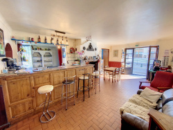 Idéalement situé sur un axe passant, au coeur d'un charmant petit village de la vallée du Garbet, ce bar-restaurant n'attend plus que votre projet de reprise ! À proximité des granges de Cominac, d'Aulus-les-Bains et sa cascade d'Ars ou encore ses thermes, de Guzet avec sa station de ski et ses nombreuses activités estivales, ce commerce profite d'un emplacement privilégié. La vente porte sur le fonds de commerce, mais également sur le droit au bail. Le bâtiment est composé d'une partie à vocation commerciale, avec de belles surfaces de stockage, et d'un appartement d'environ 100 m2 en duplex. L'accueil du public se fait, au rez-de-chaussée, dans un séduisant bar avec cheminée et une salle de restaurant de plus de 40 m2. Deux terrasses sont également exploitables aux beaux jours, sur le trottoir et dans le prolongement de la salle principale. Une cuisine avec plonge et des WC viennent compléter ce niveau. La licence IV est cédée avec le fonds de commerce, tout comme les équipements du bar qui appartiennent aux gérants actuels. En sous-sol se trouvent une cave à vin, une réserve avec chambre froide, la chaufferie ainsi que 3 garages pouvant servir de stockage. Une troisième terrasse peut être exploitée à ce niveau. L'étage offre, lui, une possibilité de logement, avec entrée indépendante. Ce duplex est composé d'une spacieuse pièce à vivre, avec cuisine ouverte sur un îlot central, de deux chambres, d'une salle d'eau et de WC indépendants sur le premier niveau, ainsi que d'une salle de bains et deux chambres supplémentaires à l'étage, dont l'une est actuellement utilisée comme bureau. Venez saisir cette opportunité sans plus attendre !