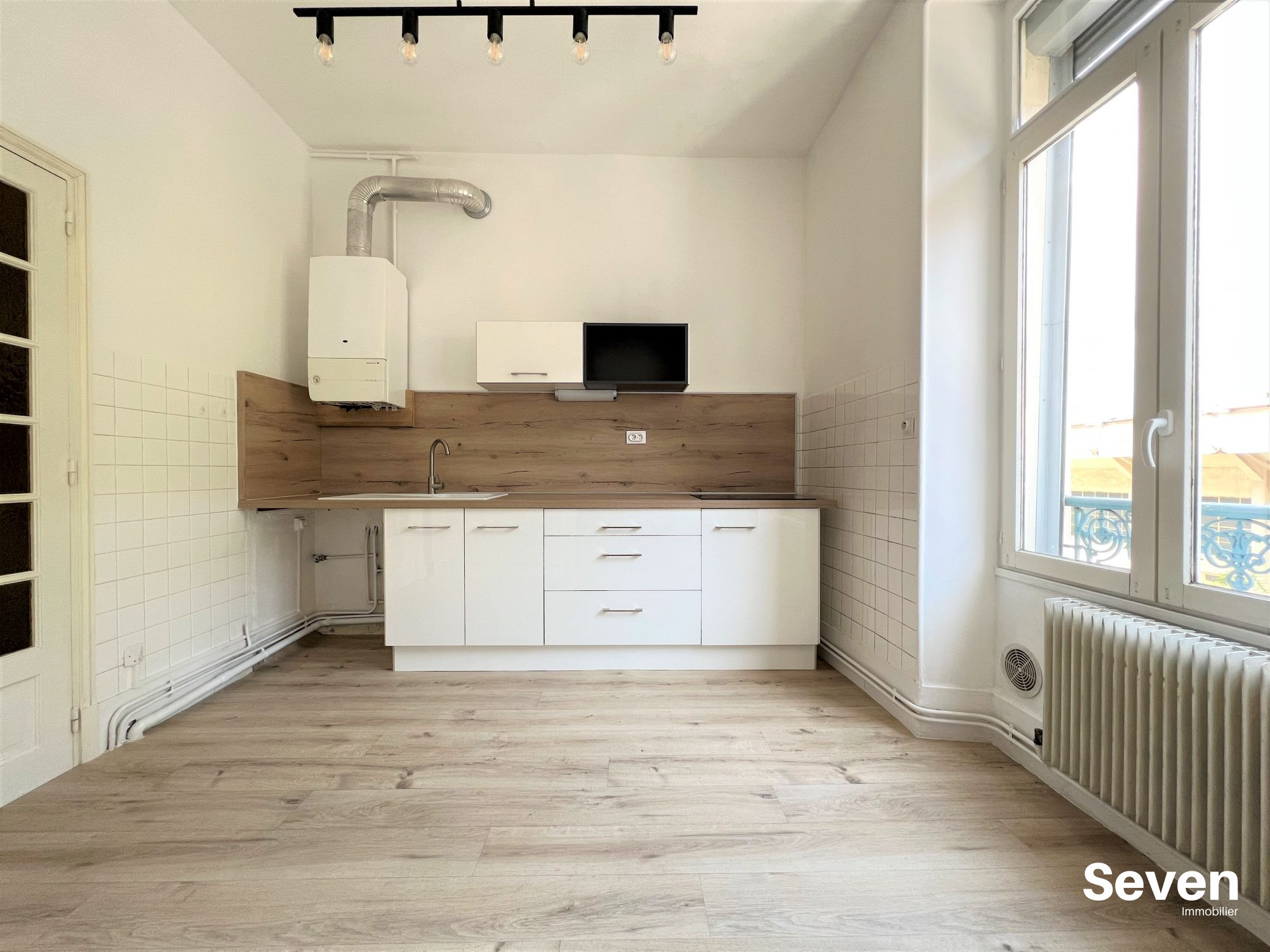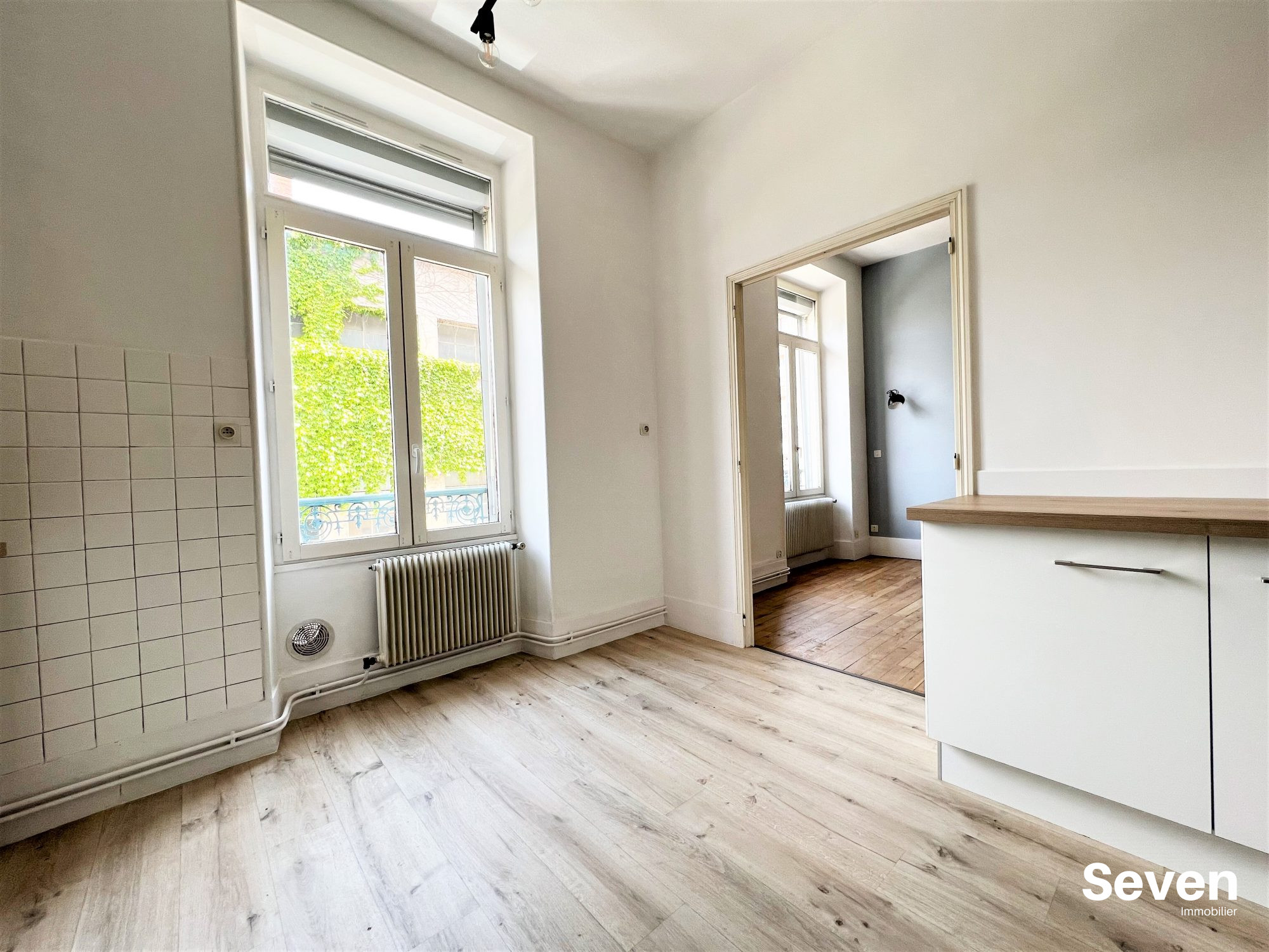 Le logement se compose d'un dégagement menant à un séjour lumineux de 15 m², donnant accès à un balcon. Les fenêtres sont équipées de double vitrage phonique, offrant un bon confort acoustique.