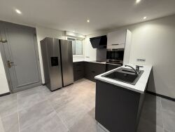 Au rez-de-chaussée, vous découvrirez une belle pièce à vivre, lumineuse grâce à sa baie vitrée, le tout donnant sur une superbe cuisine ouverte meublée et équipée, moderne et récemment rénovée, ainsi qu'une salle d'eau avec WC.
