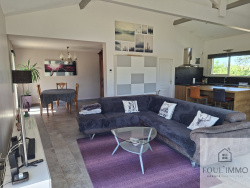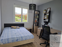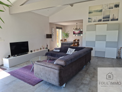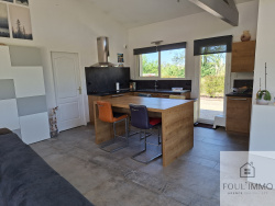 L'agence FOULIMMO vous propose à quelques minutes des commodités une maison contemporaine d'une surface de 142 m2 habitable. Cette maison située sur une parcelle de terrain plat et clôturé d'une surface de 2800 m2 se compose d'une vaste pièce de vie avec cuisine ouverte aménagée et équipée, un cellier, un espace nuit avec quatre chambres dont une suite parentale, une salle de bains et des wc indépendants. A cela s'ajoute une pièce qui fait office de salle de jeux, buanderie aménageable en cinquième chambre ou studio indépendant pour recevoir amis ou famille. Cette maison est située dans un secteur résidentiel, est très bien entretenue. Terrain clôturé, plat agrémenté d'arbres fruitiers. Chauffage au sol avec PAC, chauffe-eau thermodynamique. Très belles prestations. DPE excellent en A ! A voir sans tarder. Les informations sur les risques auxquels ce bien est exposé sont disponibles sur le site Géorisques : www.georisques.gouv.fr