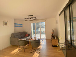 1000JT: SABLE D'OR LES PINS Plage et commerces à pied. Résidence de standing livrée en 2024. Situé au deuxième étage, exposé sud-ouest, cet appartement vendu meublé vous séduira par ses prestations de qualité et sa luminosité. Il se compose d'une belle pièce de vie sur parquet avec accès terrasse, d'une cuisine aménagée et entièrement équipée, ainsi que d'un dégagement desservant l'espace nuit. Composé de deux chambres avec rangements, une salle d'eau spacieuse et des WC séparés. En annexes, l'appartement dispose d'une cave, ainsi que de deux places de parking, dont une équipée d'une borne de recharge électrique.