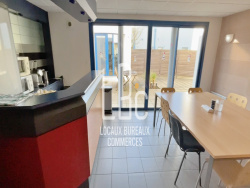 Bureaux à louer d'environ 130 m2 avec 60 m2 de partie communes incluses. L'espace se compose d'un accueil, d'un open space d'environ 52 m2, d'une salle de réunion d'envrion 18 m2. De plus, vous bénéficiez de toilettes et d'une cuisine partagées, ainsi que d'une terrasse commune pour des moments de détente. Les installations comprennent également la climatisation réversible pour un confort optimal toute l'année, ainsi qu'un accès aux personnes à mobilité réduite. Implanté sur un terrain de 3 640m2 au sein de la zone artisanale du Soleil Levant à Givrand (85800), le long de la RD 6, cet emplacement avoisine une vingtaine d'entreprises, parmi lesquelles figure le groupe BENETEAU. Loyer mensuel HT HC : 1800 EUR Provision sur charges mensuelles HT : 700 EUR HT ( Eau, Electricité, Entretien et nettoyage de locaux intérieur et extérieur, entretient des espaces verts et du parking, Télésurveillance, vérification des installations électriques, contrôle des extincteurs, Ordures ménagères). Dépôt de garantie : 2 mois de loyer EUR HT HC Honoraires de commercialisation à la charge du preneur : 5400 EUR HT Disponibilité : Immédiate N'attendez plus et contactez-nous au 02 55 07 86 35 Sonia Bernoville pour visiter ces bureaux. LOCAUX-BUREAUX-COMMERCES 02 55 07 86 35