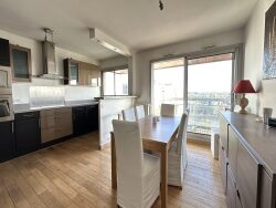 Dans le quartier recherché Centre-Ville, magnifique appartement de 3 pièces d'environ 70 m² avec un grand balcon , en excellent état, idéalement situé dans une résidence de standing avec gardien, en étage élevé. Il se compose d'une entrée avec rangements, un WC indépendant, un grand séjour donnant sur une terrasse de 17m² environ orienté Sud-Est avec vue vers Paris, une cuisine ouverte sur le séjour, 2 chambres avec placards/penderies , une salle de bains. Le tout complété par un box et un cellier. Domotique, volets électriques. A proximité des écoles, commerces et transports (à 2 mn à pied du Tram T2 Suresnes-Longchamp).