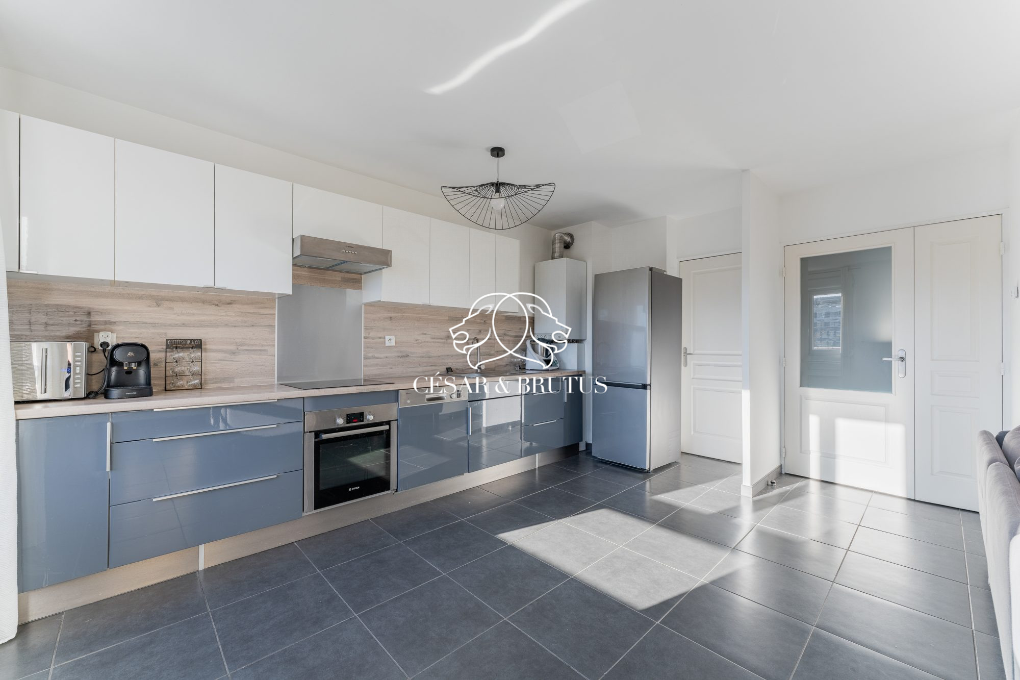 Il est composé d'un double séjour, d'une cuisine dînatoire avec cellier, de 5 chambres, d'une salle de bain et d'un WC séparé. Côté pratique, cet appartement dispose de nombreux rangements, d'une buanderie et d'un dressing.