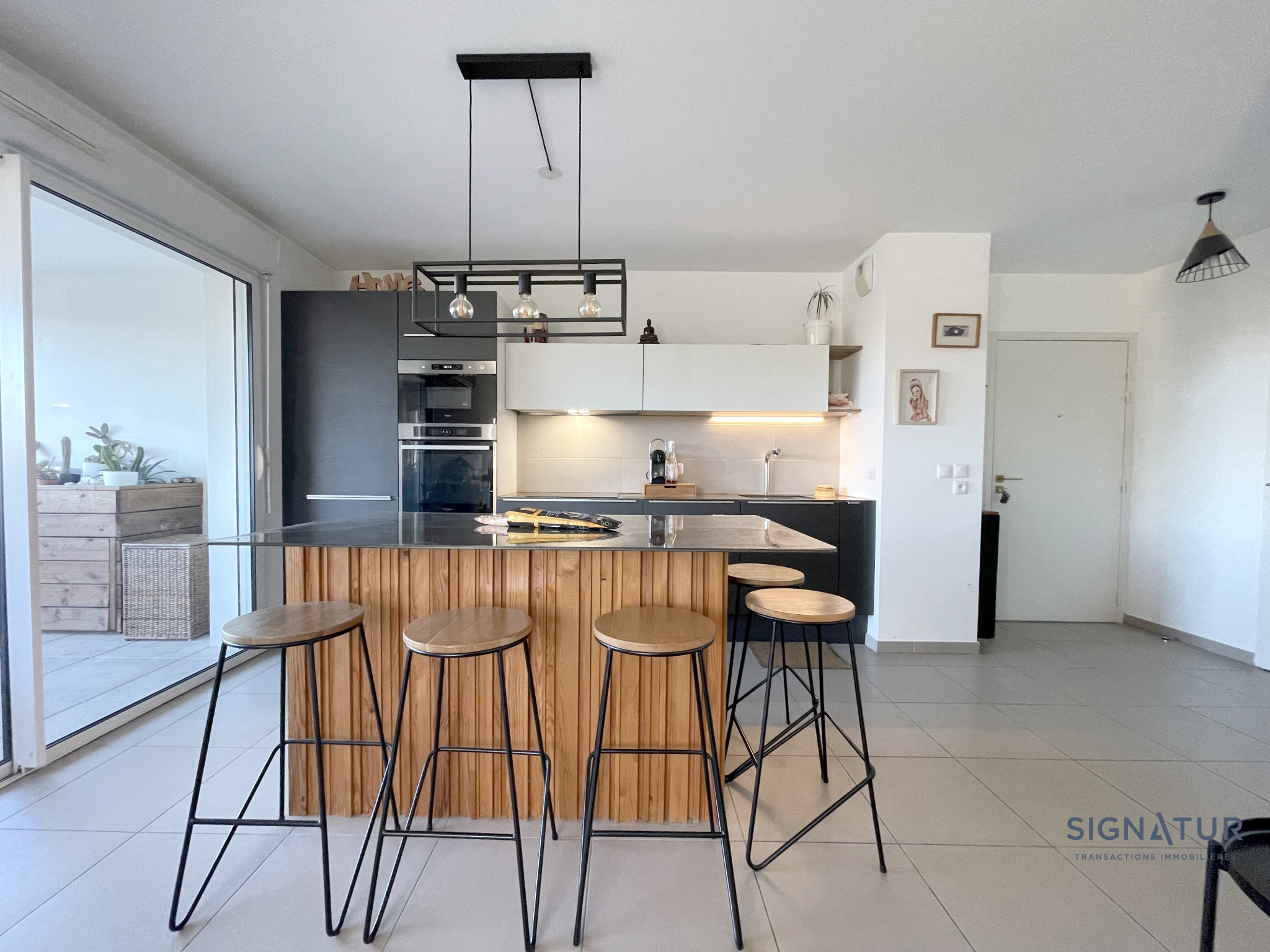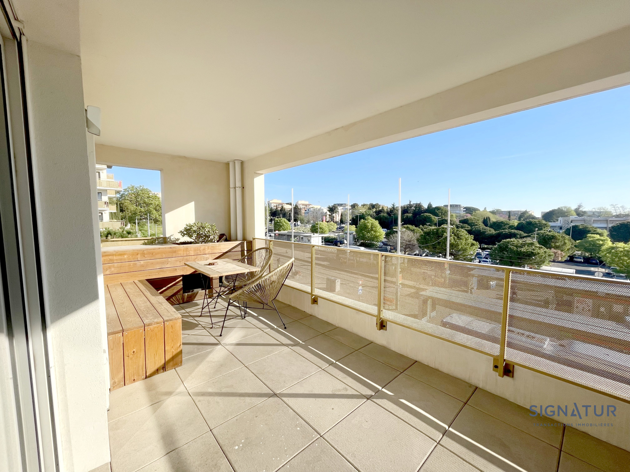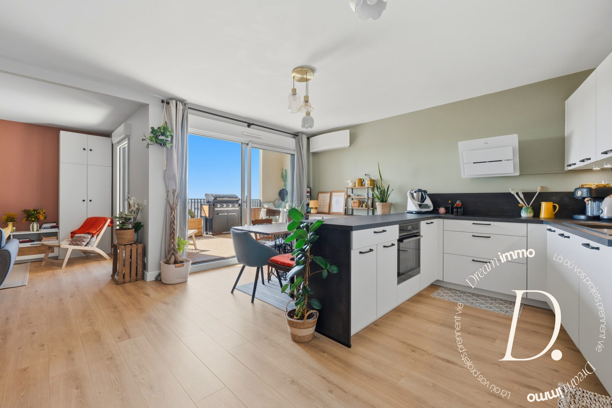Idéalement situé, dans une rue très calme et résidentielle, entouré de maison, à 5mins du tram, cet appartement de 90 m² environ, niché au dernier étage avec ascenseur d'une résidence sécurisée BBC de 2013, ne manque pas d'atouts ! - Dès l'entrée, des placards intégrés offrent un espace de rangement pratique. - Le salon-séjour, orienté sud, séduit par sa très belle hauteur sous plafond, créant une sensation d'espace unique. La cuisine ouverte, complète cet espace convivial, prolongé par une agréable terrasse idéale pour profiter des beaux jours.