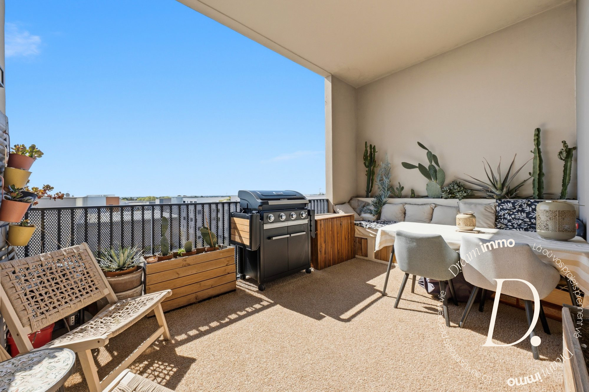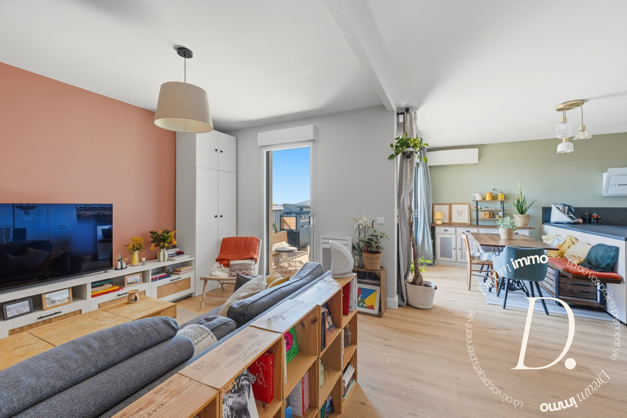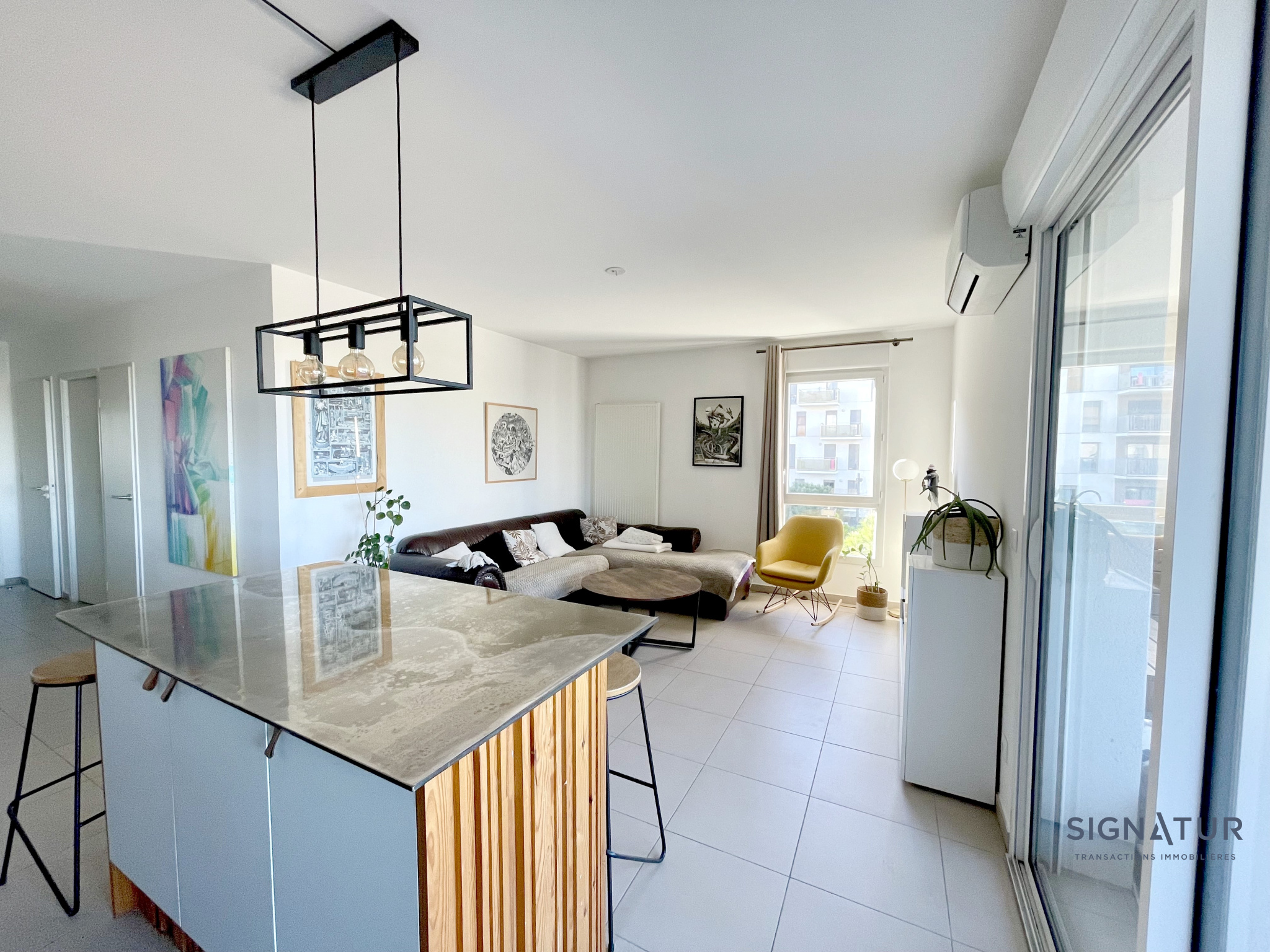 Idéalement situé, dans une rue très calme et résidentielle, entouré de maison, à 5mins du tram, cet appartement de 90 m² environ, niché au dernier étage avec ascenseur d'une résidence sécurisée BBC de 2013, ne manque pas d'atouts ! - Dès l'entrée, des placards intégrés offrent un espace de rangement pratique. - Le salon-séjour, orienté sud, séduit par sa très belle hauteur sous plafond, créant une sensation d'espace unique. La cuisine ouverte, complète cet espace convivial, prolongé par une agréable terrasse idéale pour profiter des beaux jours.