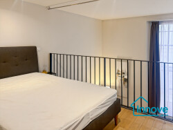 L'appartement se compose d'une cuisine entièrement aménagée et équipée, d'une agréable pièce de vie bénéficiant d'une belle hauteur sous plafond, d'une grande mezzanine offrant un espace nuit spacieux et chaleureux, d'une salle d'eau, de deux WC ainsi que de nombreux rangements.