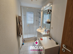 Sur la commune de Sierentz, découvrez au premier étage cet appartement F3 de 76.93m2 carrez de 2002, il est composé d'une entrée, d'un séjour de 25.31m2 donnant accès à la terrasse (le revêtement de la terrasse va être changé), deux chambres (13.60m2 -12.05m2), une cuisine séparée, une salle d'eau avec fenêtre, un WC séparé. Un garage en sous-sol, une cave ainsi qu'un parking extérieur viennent compléter ce lot. Prix 227'680EUR hors honoraires, Honoraires de 5% TTC à la charge de l'acquéreur. Charges de copropriété de 125.33EUR/mois, Bien en copropriété : 26 lots d'habitations, Pas de procédure en cours sur la copropriété. Des questions? une visite? contactez directement David PAQUIN au 06.37.11.43.39. ou par mail david@paquin-immobilier.com