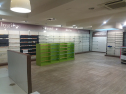 Grand local professionnel (ancienne pharmacie) de 178.49 m2 équipée d'étagères et autres + avec climatisation plafond - Possibilité d'enlever les cloisons - Porte d'entrée automatique - Parkings - TOUT COMMERCE SAUF ALIMENTAIRE