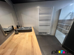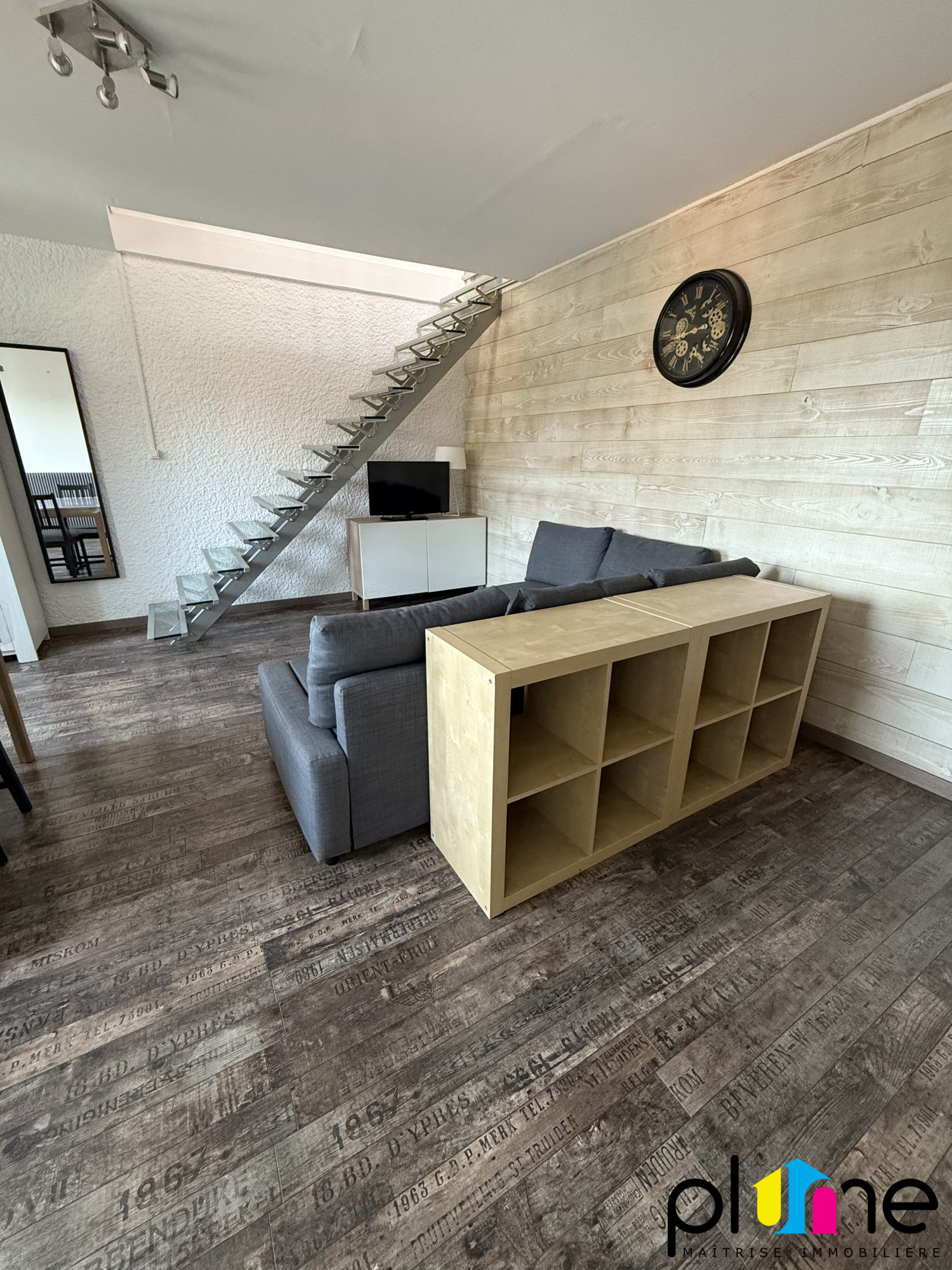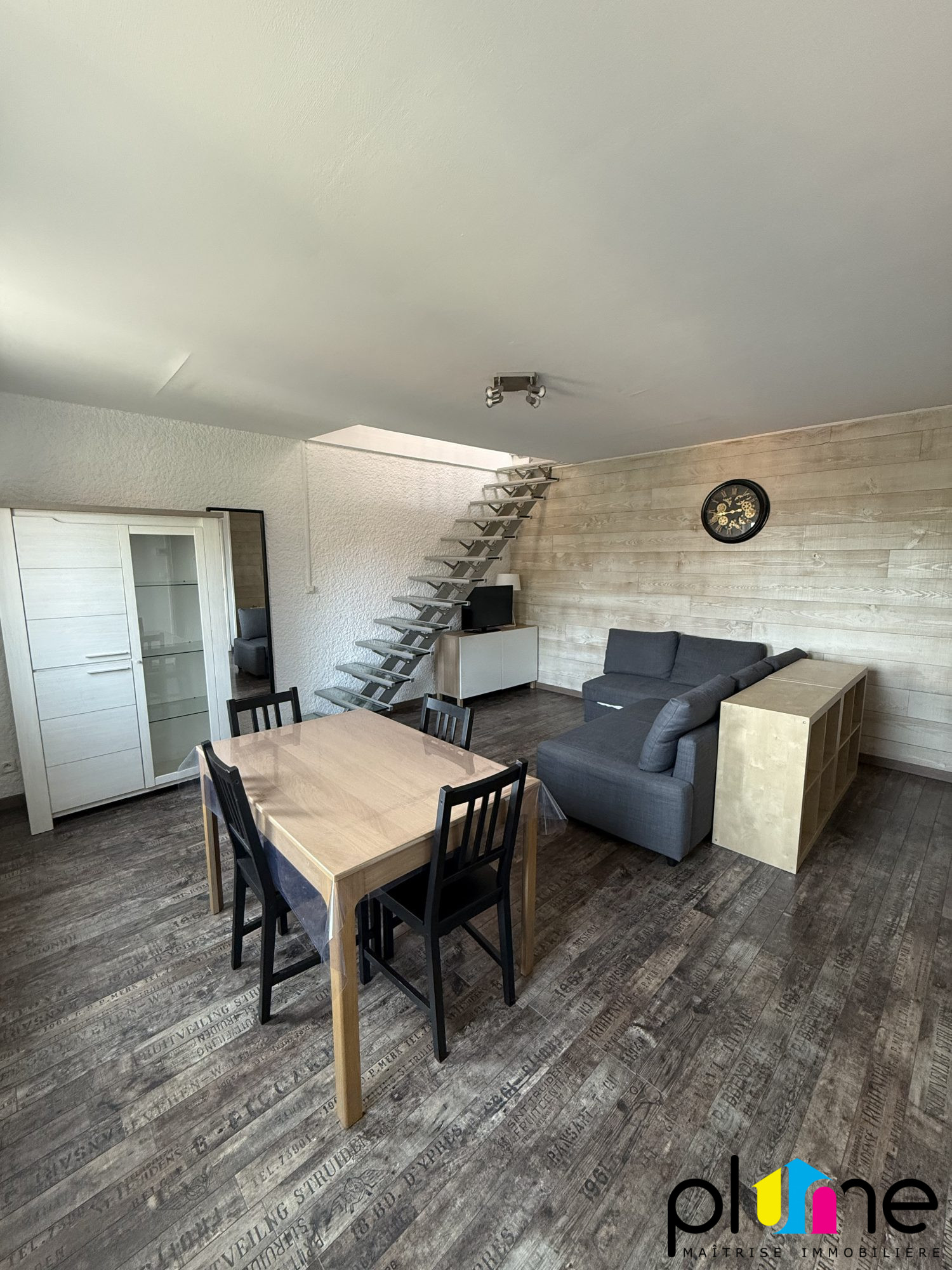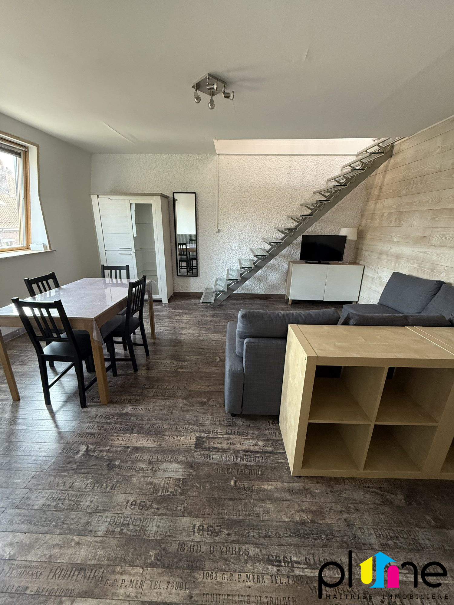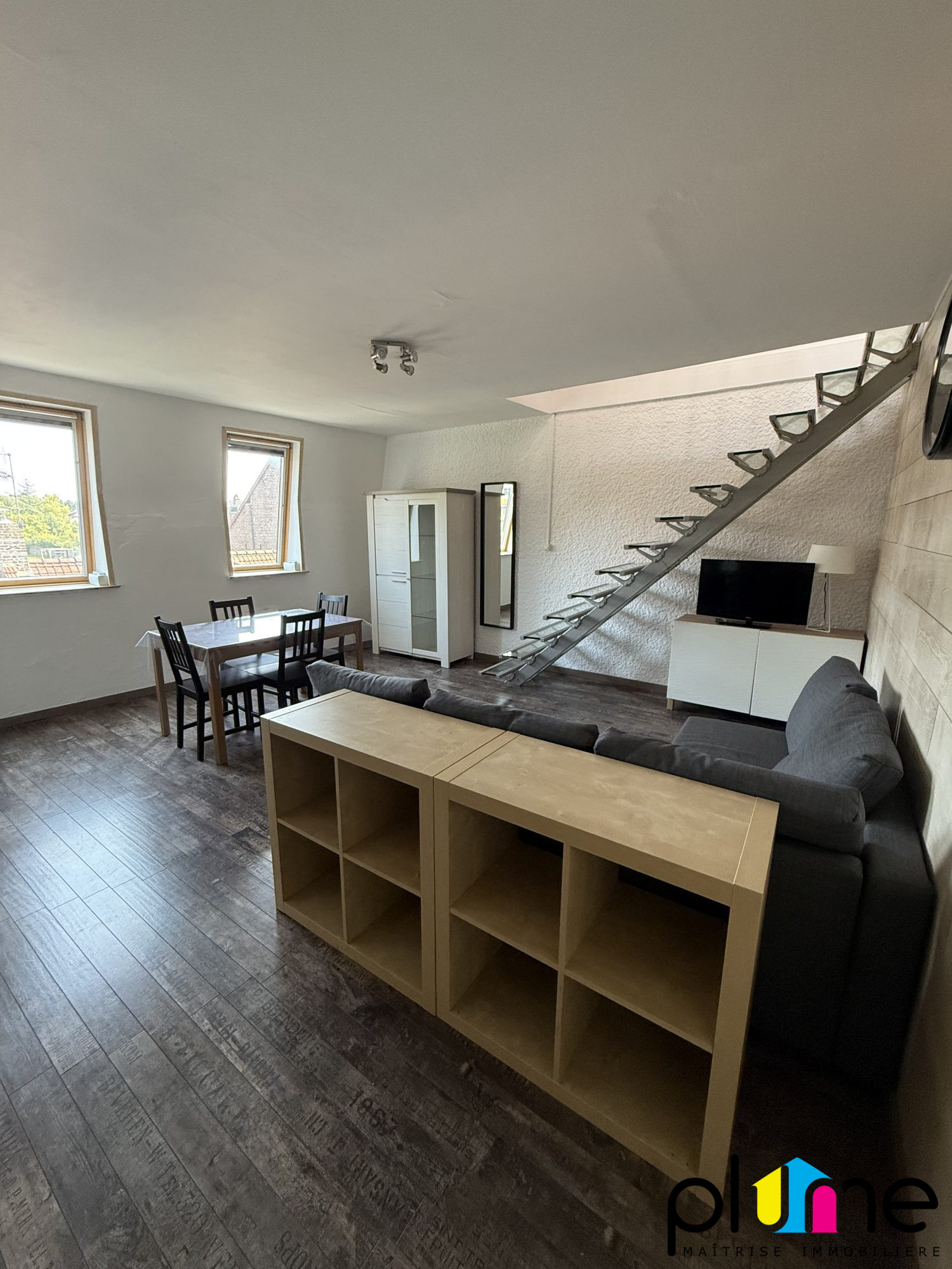 Palier privatif, belle pièce de vie lumineuse avec cuisine ouverte et aménagée, coin chambre (ouvert sur séjour), salle d'eau, wc.