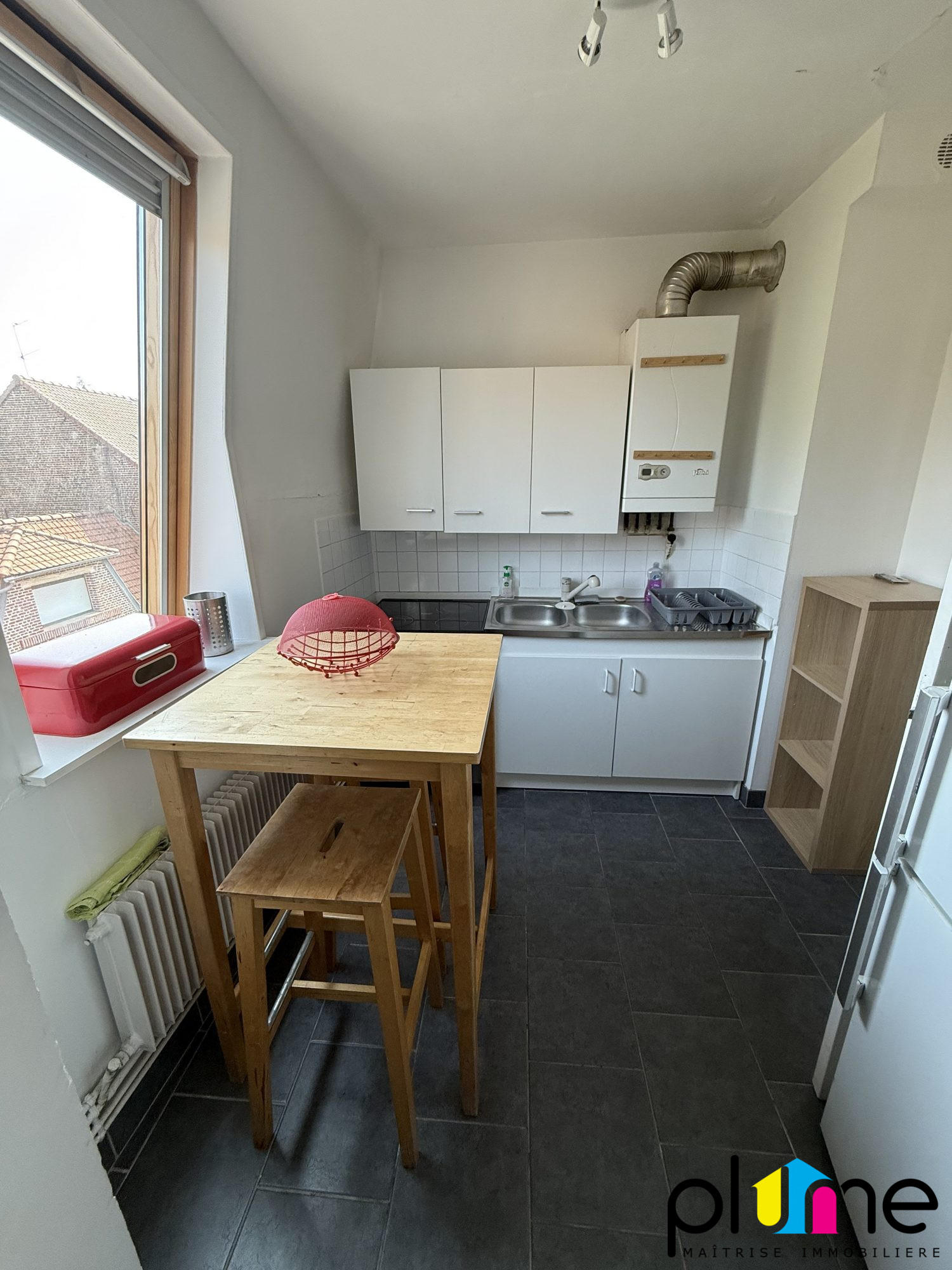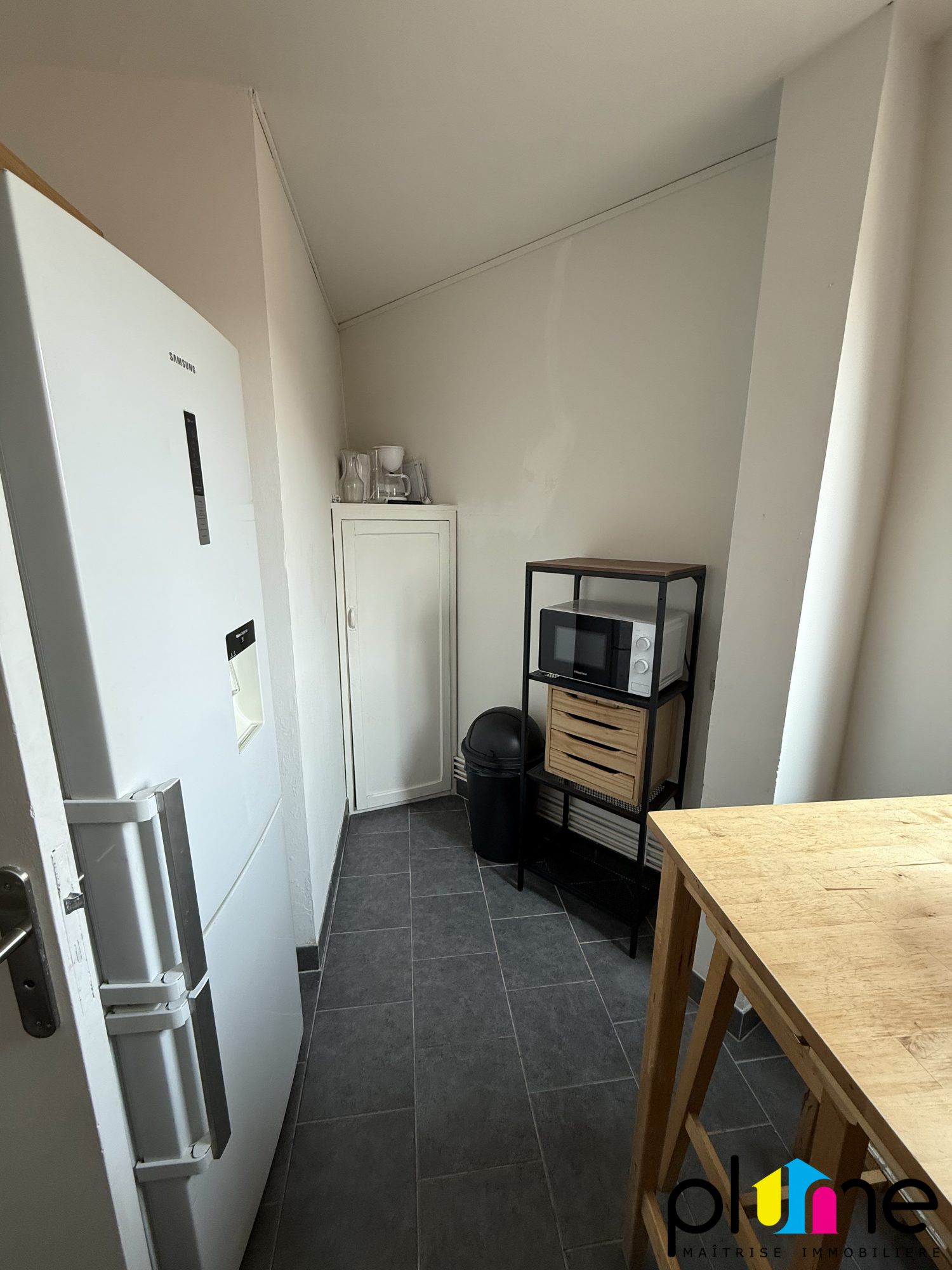 Manetie Immobilier vous propose à la location ce studio T1, loué meublé, au 2e étage, à proximité immédiate de la gare, comprenant :
