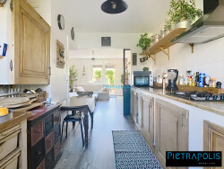 Dès l'entrée, un dégagement fonctionnel vous guide vers une belle pièce de vie conviviale avec cuisine aménagée et entièrement équipée, idéale pour partager des moments chaleureux.