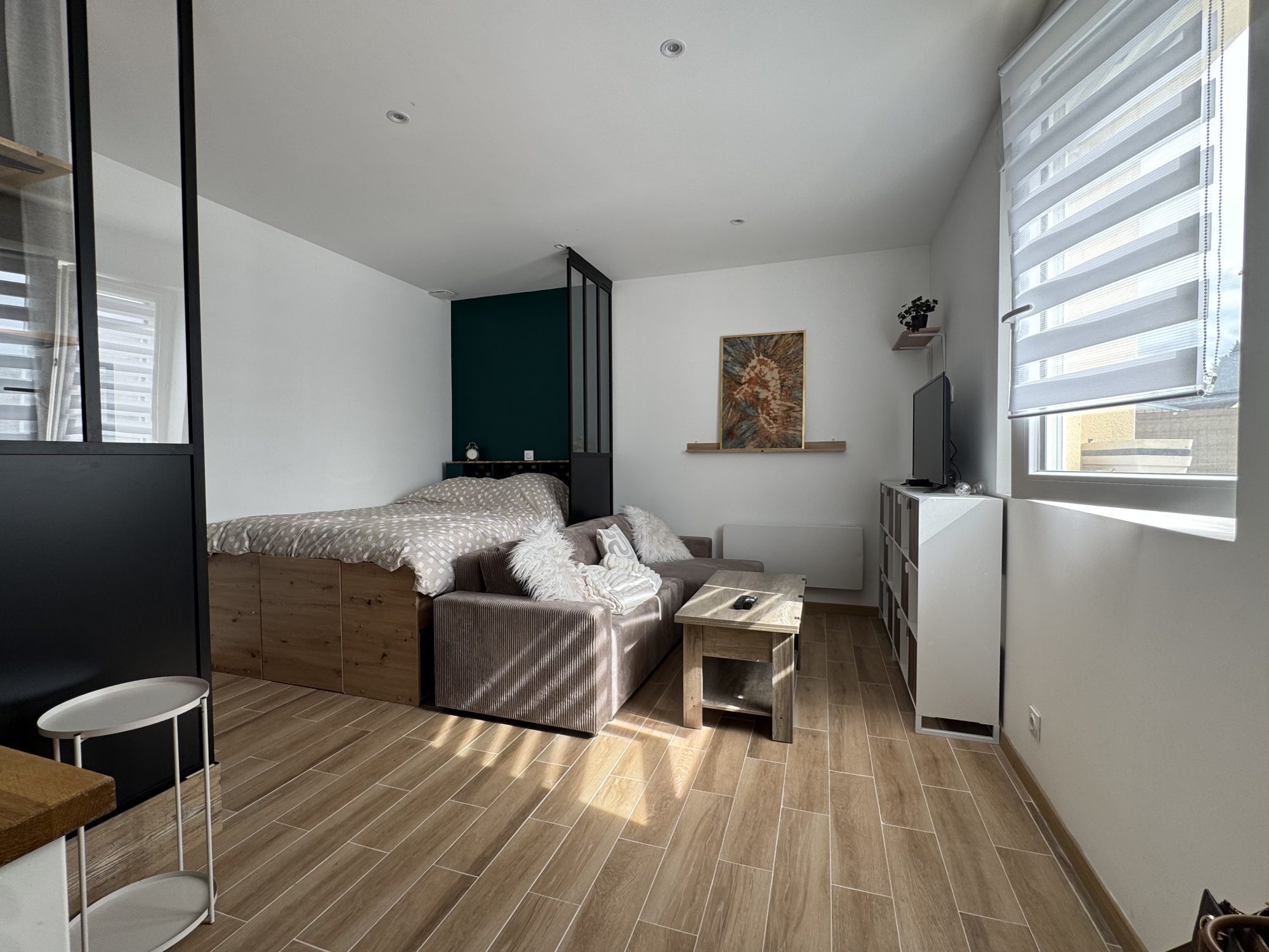 Contacter l'agence partenaire FS IMMOBILIER/ Claire DERCY au 01x30x40x04x46 ou location@fsimmobilier.com pour visiter ce T2 entièrement MEUBLE d'environ 33.72 m² avec une entrée indépendante, Entrée, séjour, coin cuisine équipée avec frigo table top, plaque de cuisson et hotte, four, micro ondes, lave linge, 1 chambre, salle de bain et wc. Parking facile à proximité.