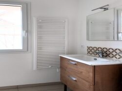 Passé une entrée qui dessert la salle d'eau moderne avec fenêtre et les WC indépendants, vous arrivez dans la grande pièce de vie de 39m2 et sa hauteur sous plafond de 3m qui accroît le sentiment d'espace. Cette pièce de vie vous offre deux espaces distincts pour installer une confortable cuisine, puis un large salon illuminé par une grande baie vitrée qui offre un accès direct au jardin engazonné prêt à accueillir vos repas au retour des rayons de soleil