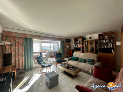 CANET SUD Belle vue mer pour ce grand T3 au 4ème et dernier étage d'une résidence sécurisée. Exposé plein Sud, il vous propose une large pièce de vie ensoleillée donnant sur loggia de plus de 11m² vous offrant une vue mer et Albères, cuisine séparée entièrement aménagée et équipée avec cellier/buanderie attenant. Entrée avec placard, deux chambres avec vue corbières, salle d'eau avec fenêtre et wc séparé. Les plus: traversant, climatisation, double vitrage, volets roulants électriques, grande loggia exposée sud, vue mer, parking privatif, ascenseur, visiophone, local vélos, résidence entièrement sécurisée. Commerces au pied de l'immeuble. Renseignements et visites au 04.68.80.37.43 AGENCE DU SOLEIL CANET - BLONDEL Maïté 06.20.59.19.63 ou vente.blondel@agencedusoleil.com