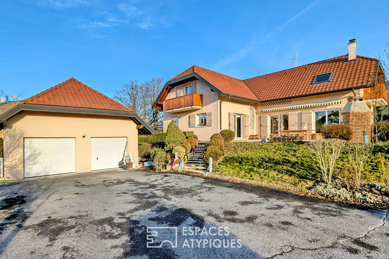 A Neuvecelle, dans un quartier très calme, une belle maison avec VUE LAC, offrant de très gros volumes d'une surface totale de 324,76 m2, le tout implanté sur un terrain de 1851 m2.
