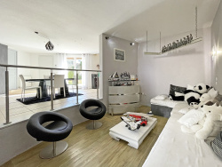 Dès l'entrée, la maison impressionne par ses volumes spectaculaires et la qualité de ses prestations. La pièce de vie principale de 77 m2, baignée de lumière, offre une cuisine ouverte sur un double salon aux proportions rares. Les espaces ont été pensés pour conjuguer convivialité et élégance.