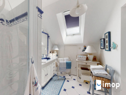 À l'étage, une mezzanine bureau de 20 m² surplombe le séjour et mène à trois chambres mansardées de 15 à 19 m², dont deux avec leur salle d'eau, complétées par un WC indépendant et deux greniers.