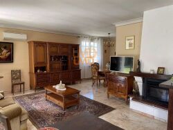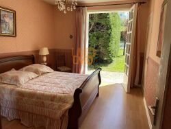 avec insert à granulés.La cuisine équipée ,communique avec une grande véranda. Les grandes baies coulissantes avec double vitrage garantissent une luminosité optimale tout en assurant une isolation thermique et sonore parfaite et offrent une superbe vue sur la campagne environnante. En rez de jardin un appartement T2 indépendant.?Deux garages dont un entièrement carrelé avec un espace buanderie, une cuisine d'été, une cave deux greniers et un local complètent cette offre.??L'extérieur est tout aussi séduisant avec une piscine privée sécurisée et un jardin soigneusement entretenu. Le système d'éclairage extérieur ajoute une touche de magie aux soirées estivales. La maison est entièrement clôturée, assurant ainsi tranquillité et sécurité, renforcée par un système d'alarme performant.