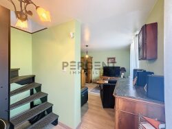 2ème logement (moitié du 1er étage + 2ème étage) comprenant au 1er : un salon et une chambre. Puis au 2ème étage : une autre chambre, un séjour (ou chambre passante), une salle de douche avec WC et une cuisine équipée avec salle à manger.