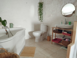 - La deuxième maison dispose d'un hall d'entrée idéal pour stocker des vélos, matériels..., on arrive ensuite sur une salle à manger avec cuisine ouverte équipée de 35m2 au total, une buanderie, ainsi qu'une salle d'eau avec toilette. A l'étage, une grande pièce ouverte style loft avec un coin salon, également un accès à la terrasse tropézienne, une salle de bain avec baignoire et toilette, une chambre, une autre pièce pouvant être transformée en chambre ou bureau ainsi qu'une grande mezzanine.